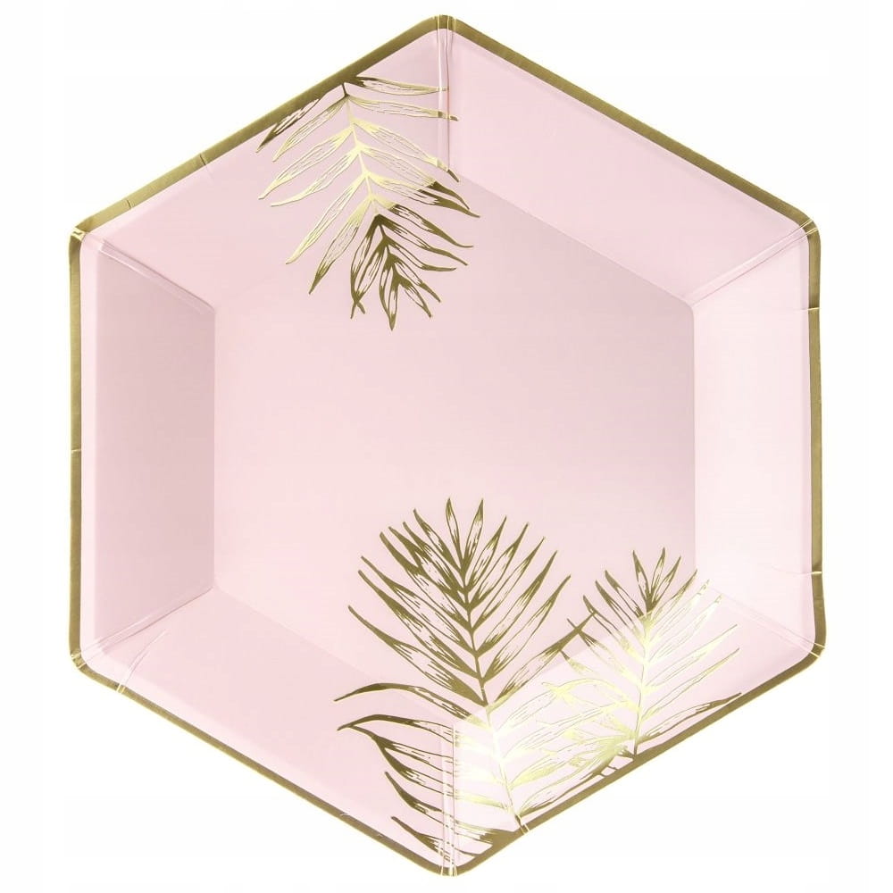 Talerzyki papierowe liście jasnoróżowe 23 cm 6 szt