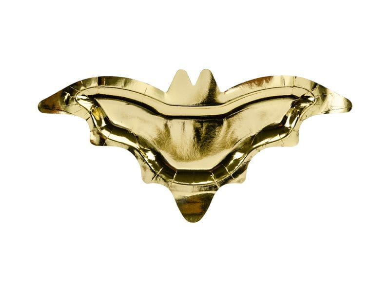 Talerzyki papierowe na Halloween nietoperz złote 37 cm 6 szt