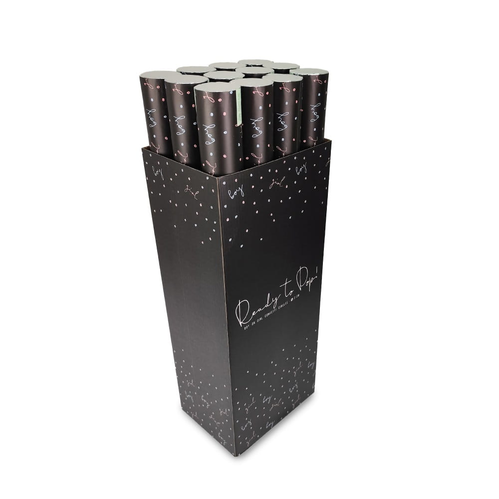 Tuby strzelające konfetti błękitne na gender reveal 60 cm 36 szt