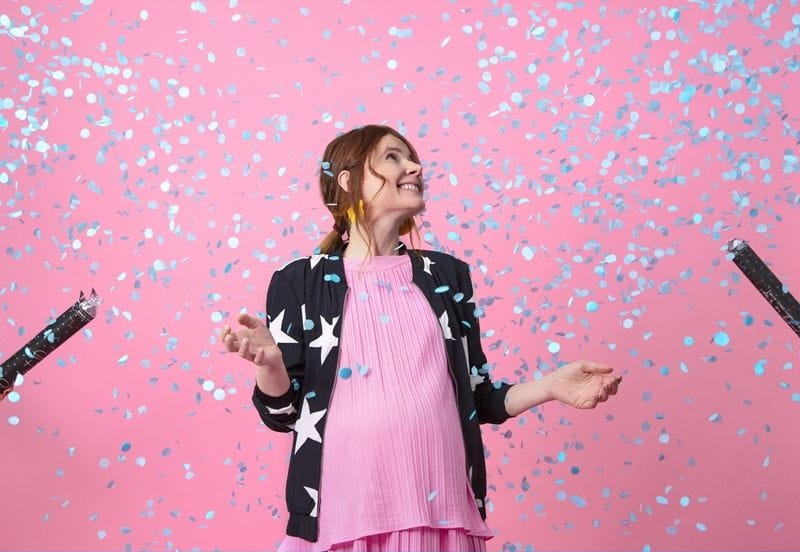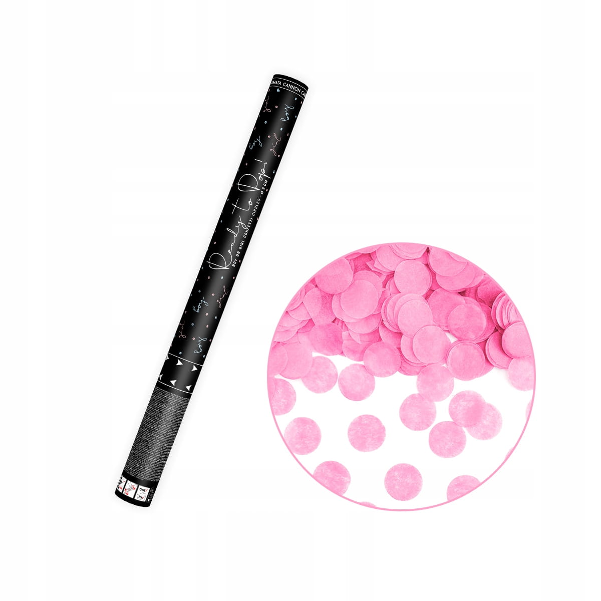 Tuba strzelająca konfetti różowe na roczek gender reveal 60 cm