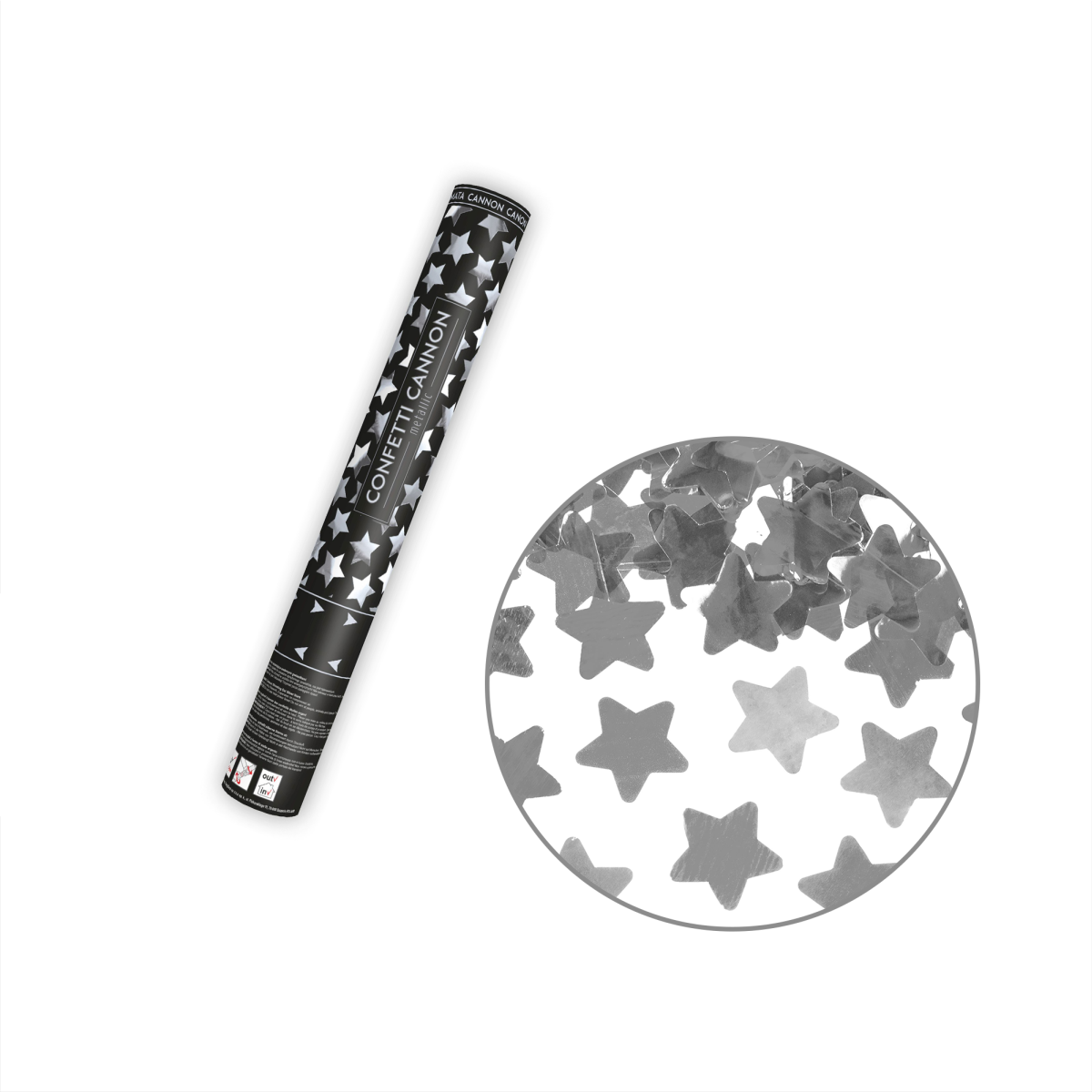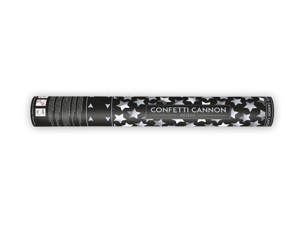 Tuba strzelająca konfetti srebrne gwiazdki 40 cm