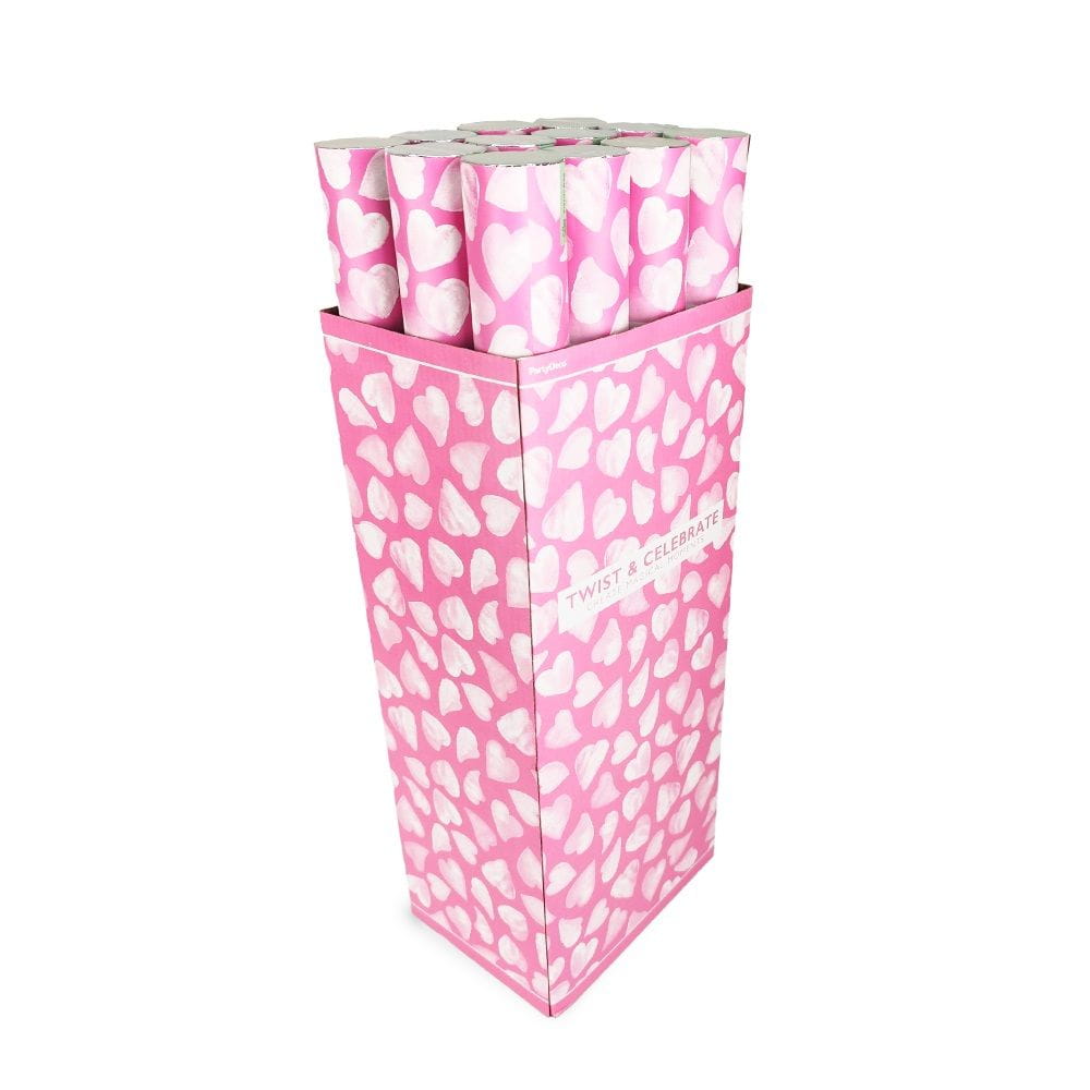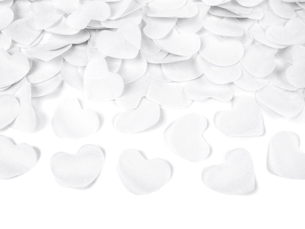 Tuby strzelające konfetti bibułowe serca białe 60 cm 36 szt