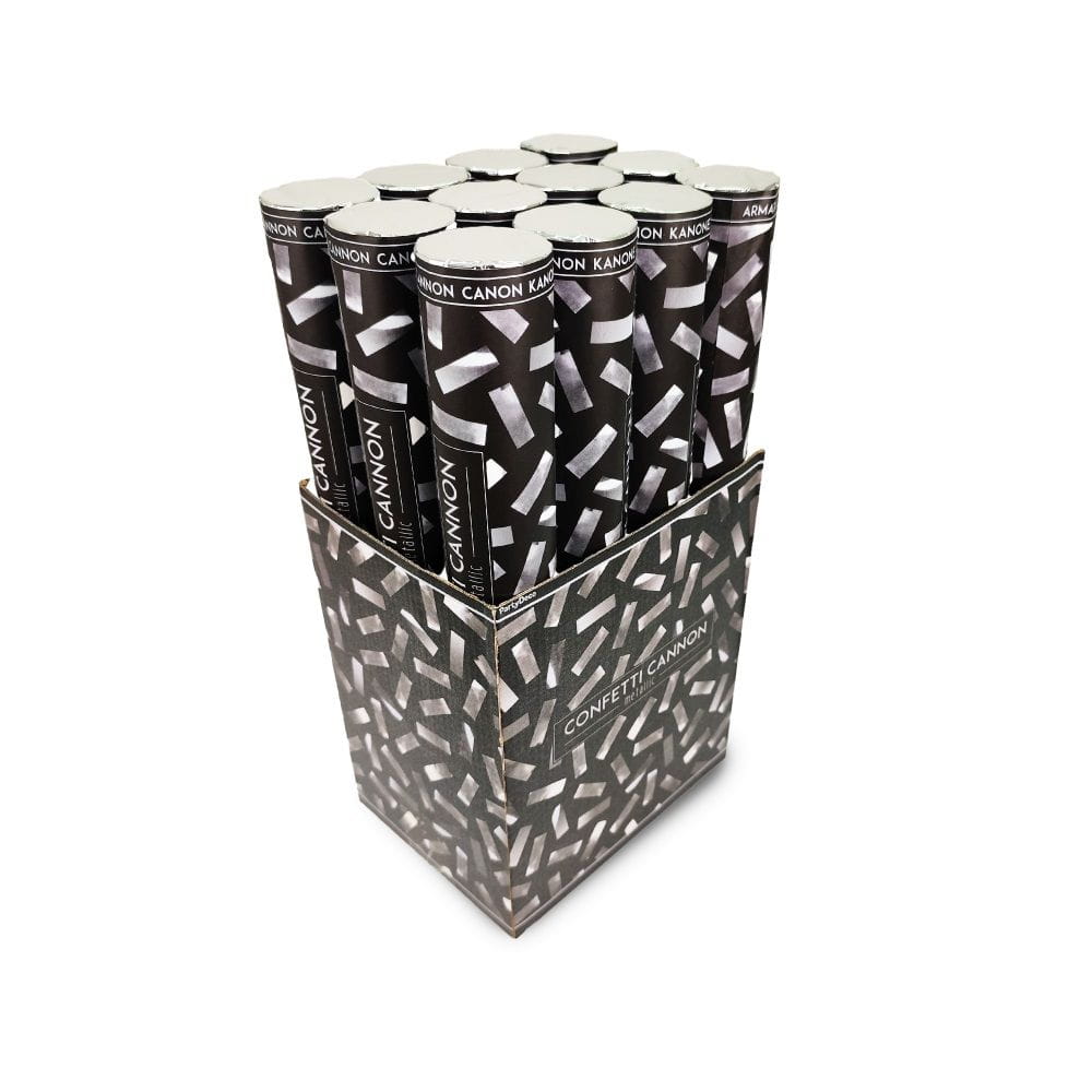 Tuby strzelające konfetti srebrne 40 cm 72 szt