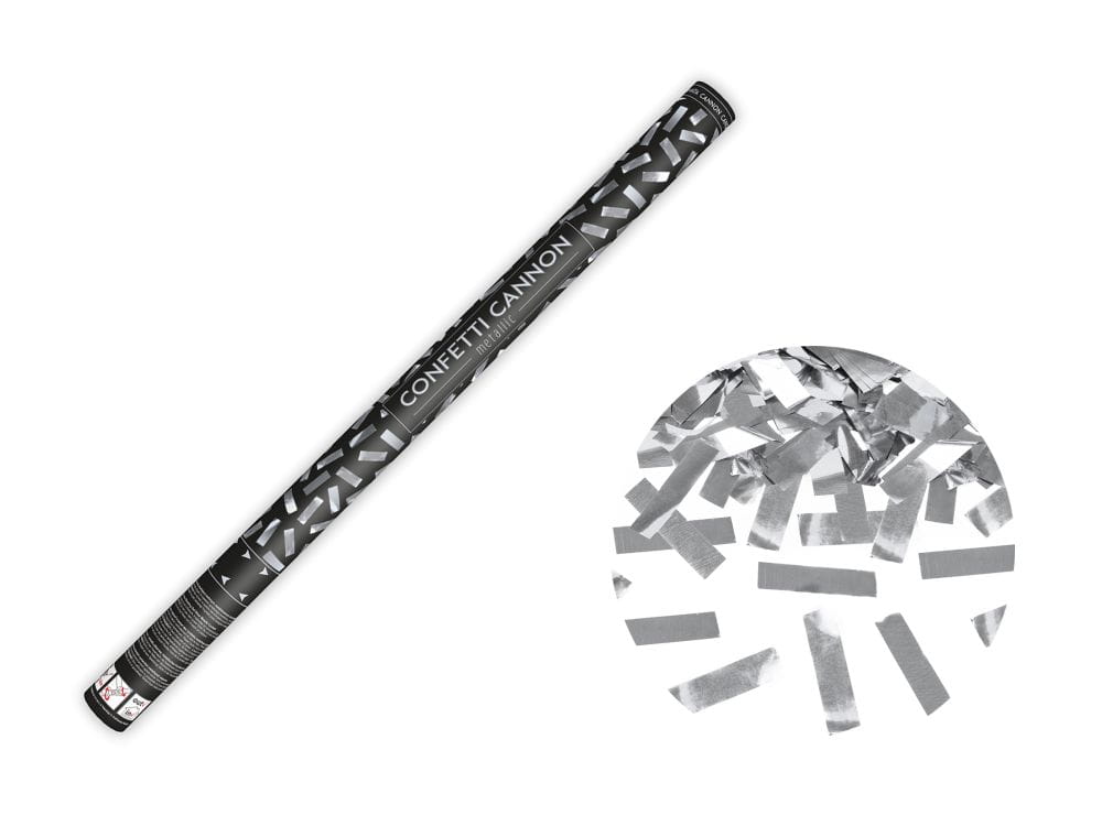 Tuby strzelające konfetti srebrne 80 cm 36 szt