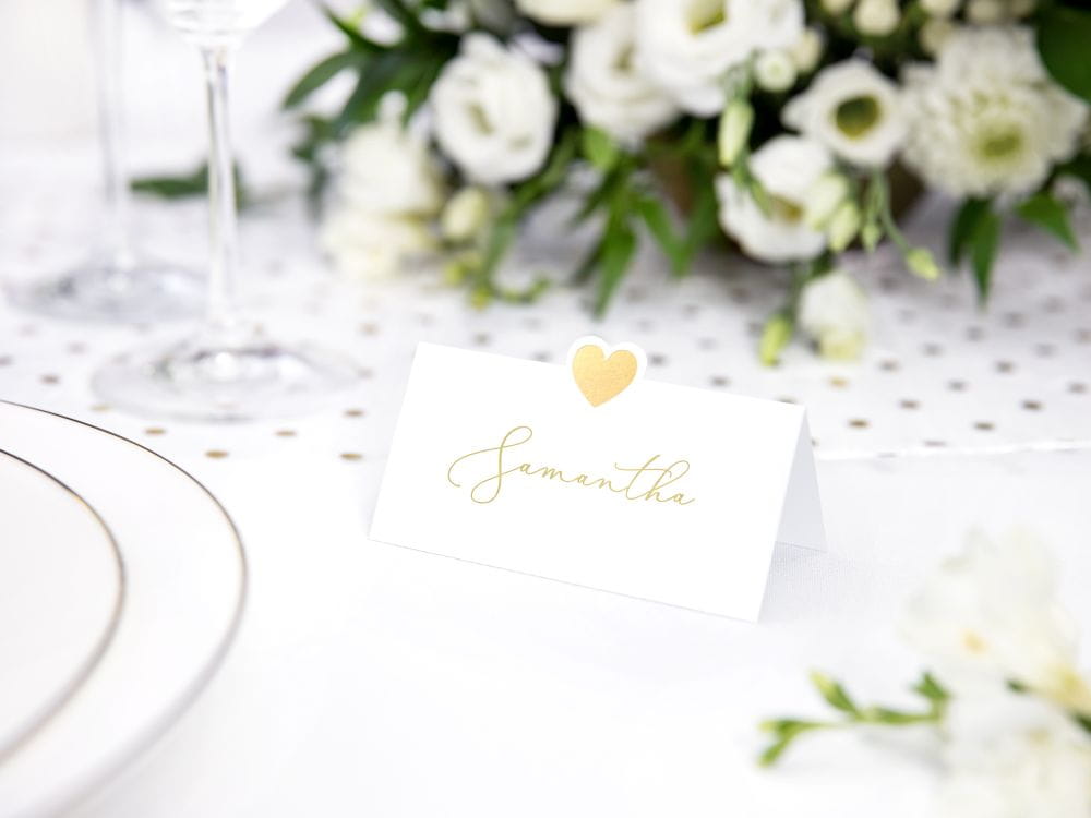 Winietki ślubne serduszko złote 10 szt