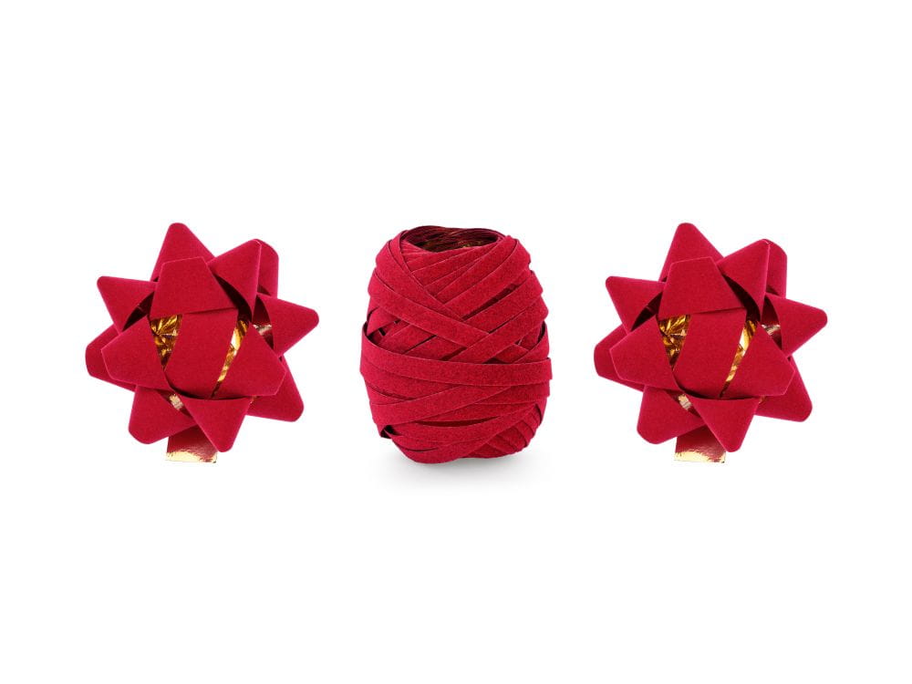 Wstążka i rozetki do prezentów welurowe czerwone 3 szt